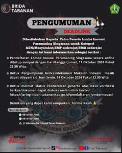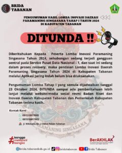 Pengumuman Deadline!!! Lomba Inovasi Daerah Paramaning Singasana Tahun 2024. Diberitahukan kepada Calon Peserta Lomba Inovasi Daerah Paramaning Singasana Tahun 2024...